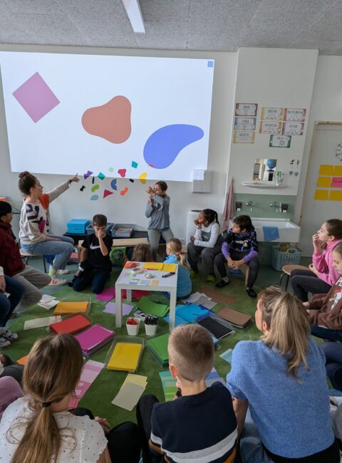 Danach kreieren wir mit buntem Papier unsere eigenen Totemtiere – Sprechblasen erwecken die Krafttiere zum Leben: welche Nachrichten übermitteln sie uns? Welche Superkräfte besitzen sie? Dabei entsteht eine bunte Wand voller Totemtiere von und für die ganzen Klasse.